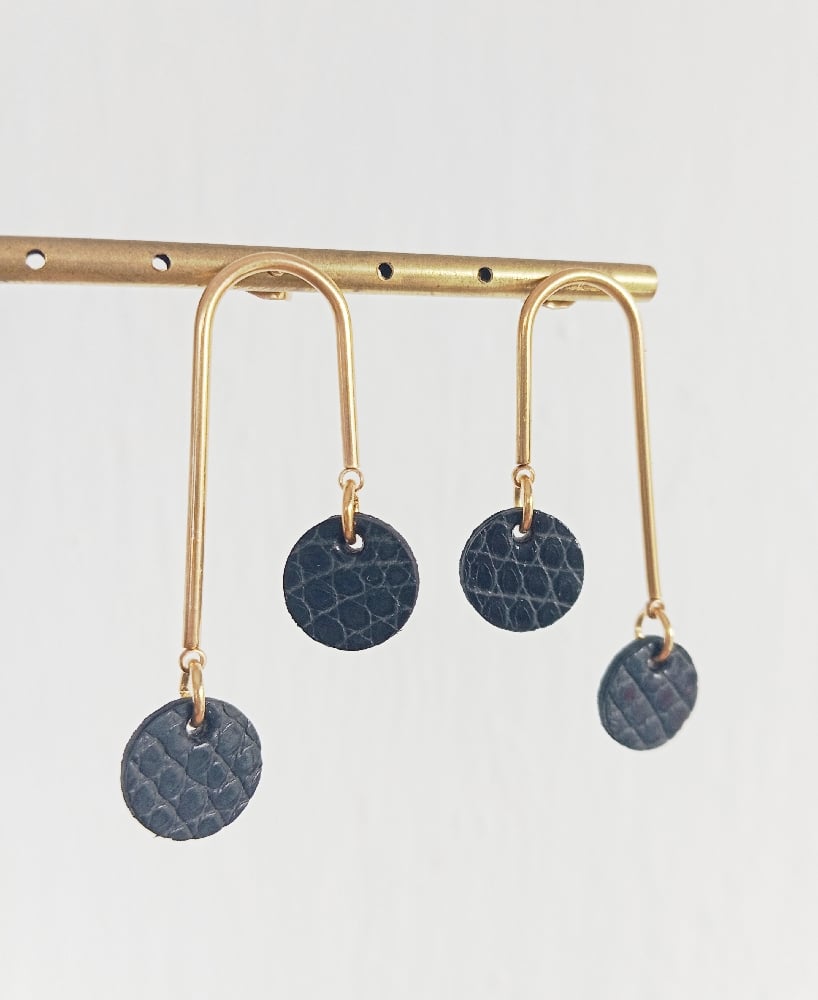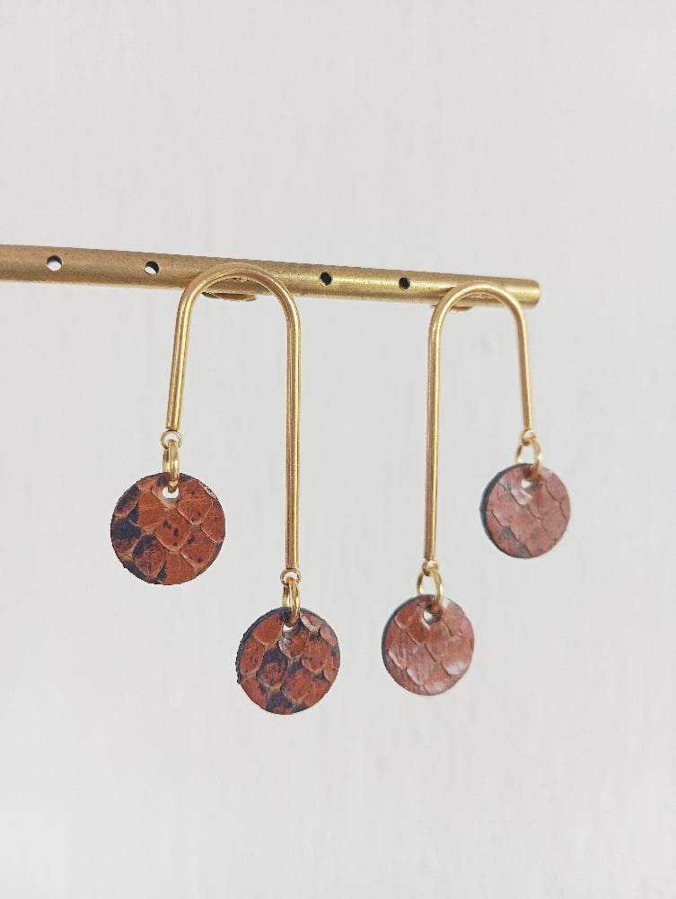 • Boucles d'oreilles faites main en cuir exotique.